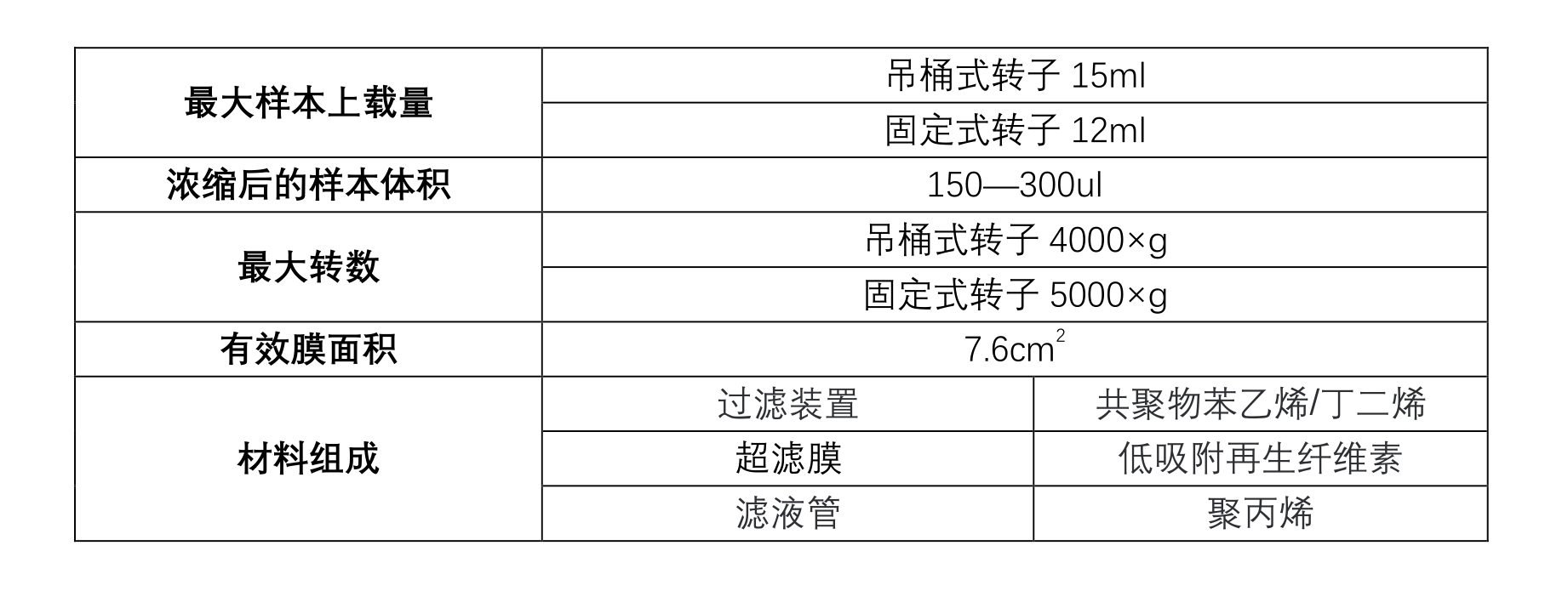 (1)???? 最大起始樣本處理量:15ml(吊桶式轉(zhuǎn)子),12ml(固定式轉(zhuǎn)子),濃縮后終體積為200ul;