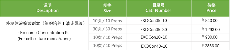 此試劑盒有不同規(guī)格的濃縮柱,一次可處理5ml、10ml或40ml樣本,可達(dá)到20-40倍的外泌體濃縮。此種方法操作簡單,適合常規(guī)實驗室的外泌體研究,有廣泛的下游應(yīng)用,如粒徑分析,核酸提取,Western Blot,ELISA等,也可以進一步對外泌體純化,如抗體偶聯(lián)磁珠外泌體捕獲和分離試劑盒(Cat.#EXOMBoCU-xx)或外泌體提取和純化試劑盒(Cat.#EXORGxxCU-1)。